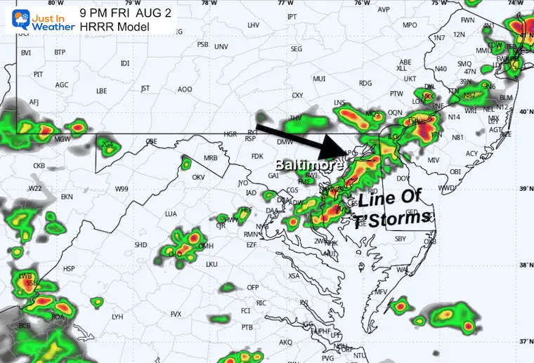 In The Heat Dome! One disturbance will produce thunderstorms this afternoon and tonight from central Pennsylvania to Central Maryland.