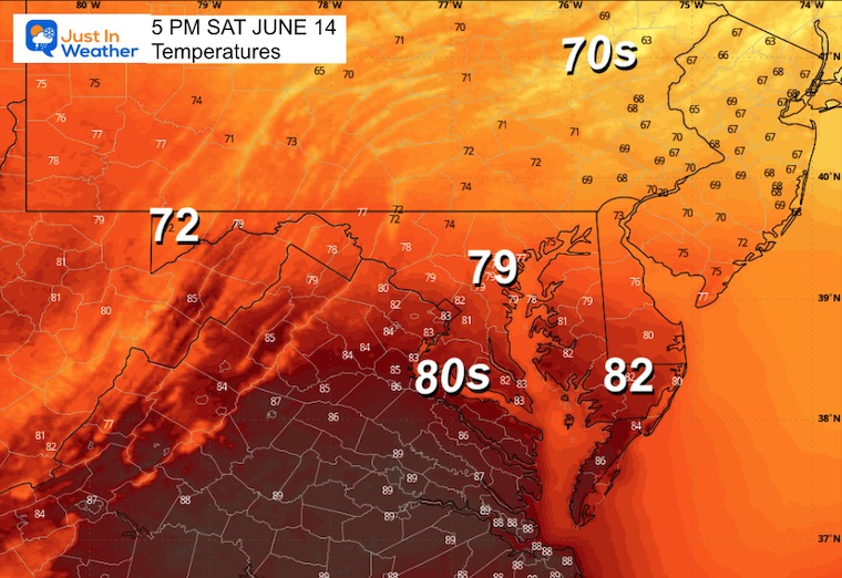 The extended outlook shows a chance for rain on Father’s Day. It will not be a washout, but it may include multiple cells.