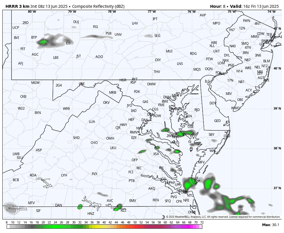 We are in a situation with a cold front that will focus the energy just south, and slow moving thunderstorms may dump locally heavy rain later today and tonight. This includes metro Washington to southern Maryland. However there will be more showers and storms across the rest of our region.