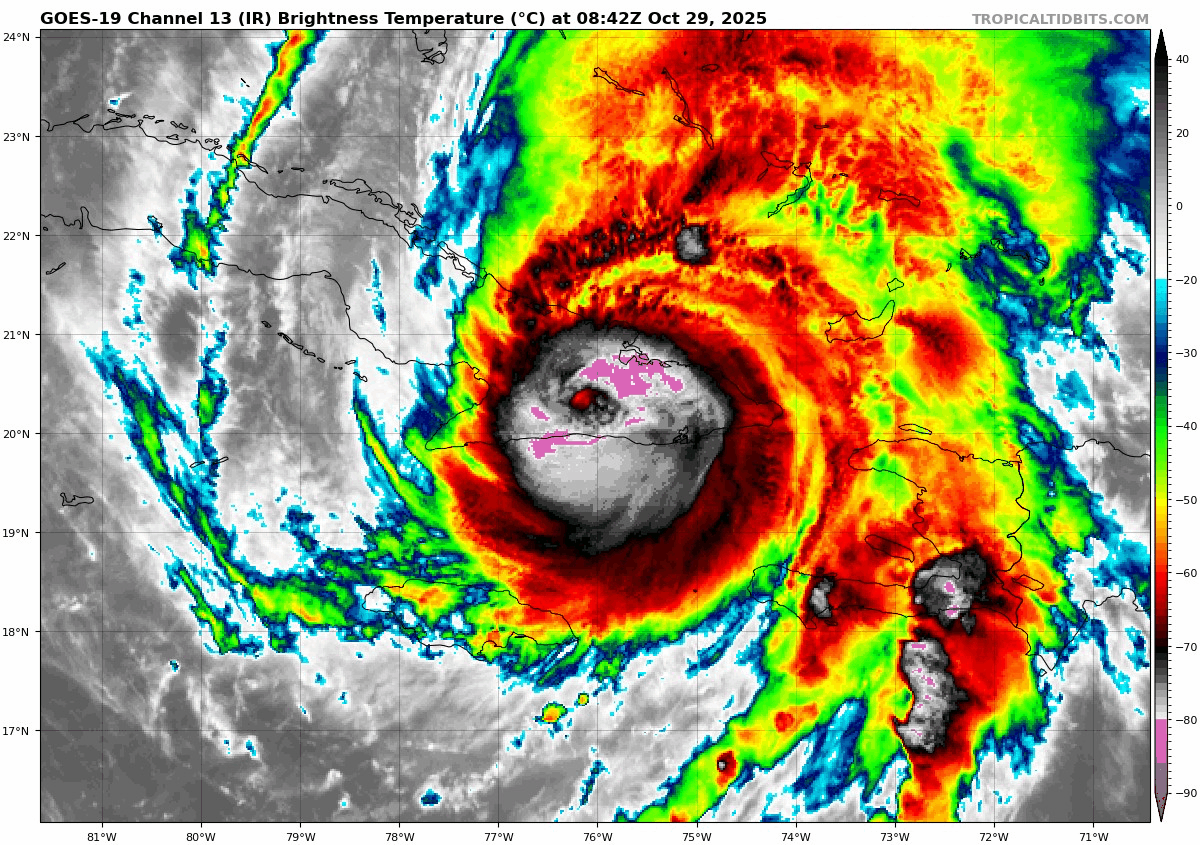 October 29 Hurricane Melissa Crossing Cuba As Cat 3 And Local Rain Increasing Into Tomorrow